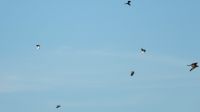 Als ein junger Rotmilan hier dem einen Kibitz zu nah kam, waren jedoch plötzlich 7 weitere Tiere in der Luft, um diesem beizustehen.