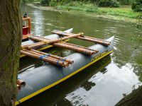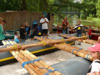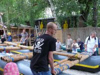 Also konnte es rauf auf das Piratenfloß und die Oker entlang gehen. Die älteren Freibeuter mussten sich ihr Floß selbst bauen, was schließlich nach ca. 2 Stunden harter Schufterei gelang.