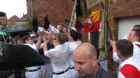 Mit dem Austragen der Schützenscheiben, und dem Segnen am Haus zog der dritte Zug bei regnerischem Wetter durch Adenstedt: