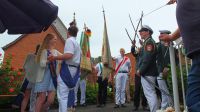 der große Umzug am Sonntag machte Station, um die Schafferdamen Inken und Lucie der Junggesellschaft abzuholen:
