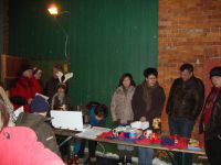 Aufgrund des extremen Glatteises und des vielen Schnees hatten sich wohl nicht so viele Leute auf den Weg getraut... Dafür waren erfreulich viele Kinder da, die der von Pastor Sabrowski vorgetragenen Geschichte "Worüber das Christkind schmunzeln musste" lauschten. Gesungen wurde: Wir sagen euch an den lieben Advent, Es ist für uns eine Zeit angekommen und das Gloria in excelsis Deo, begleitet durch Frau Wagner mit der "Mundorgel". Tochter Christina las die Geschichte: "Das Christkind auf dem Finanzamt". Zum Schluß gab es Glühwein mit und ohne Schuß, Schmalzbrote und Gebäck.