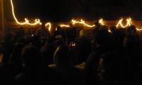 Mit Gitarrenbegleitung sangen die ca. 45 Versammelten das Kalenderlied, welches davon handelt, daß jeden Tag ein weiteres Blatt vom Wind der Zeit veweht. HaJo Kloster erzählte dann die Weihnachtsgeschichte von Kurt dem Trucker, der zu Weihnachten unterwegs ist und zwei obdachlose AnhalterInnen zuhause aufnimmt, und so glücklich wird, getreu dem Motto: Liebe ist das einzige Gut, was mehr wird, wenn man es teilt. Nach dem Gedicht Weihnachtsfreude von Marlene Hörmann, dem gemeinsamen Lied "Am Weihnachsbaum die Lichter brennen", und einem Gebet wurde der Abend beschlossen mit dem Lied von Reinhard Mey, "Gute Nacht, Freunde", das mit dem Text: "Habt Dank für die Zeit, die ich mit Euch verplaudert hab, und für Eure Geduld, wenns mehr, als eine Meinung gab. Dafür daß ihr nie fragt, wann ich komm oder geh, für die stets offene Tür, in der ich jetzt steh." auch für mich eines Weihnachtssonges mehr als würdig ist. Zum Abschluß gab es für alle Glühwein und selbstgebackene Kekse. 5. Dezember - Kirchen-Gottesdienst