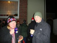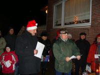 Dem kalten Wind zum Trotze fanden sich rund 40 Besucher im "Westend" ein. Hausherr Dr. Frank-Achim Schmidt begüsste die Anwesenden und flott ging es zum ersten Lied: "Kommet ihr Hirten". Anschliessend las Frank-Achim die etwas andere Weihnachtsgeschichte vor. Dann wurde "Vom Himmel hoch" gesungen. Dr. Lutz Zacharias gab die schaurige Adventsgeschichte von Loriot zum besten. Zum Abschluß wurde "Süsser die Glocken nie klingen" gesungen. Mit dem obligatorischem Glühwein bzw. Kinderpunsch und Gebäck klang der lebendige Adventskalender aus.