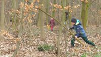 Bei trockenem Wetter und Sonnenschein fanden sich neben den etwa 50 Kindern auch viele Erwachsene ein, um am Odinshain auf die Suche nach den Ostereiern zu gehen, die von den Osterhäsinnen und Osterhasen im Vorfeld im Lahwald versteckt wurden.