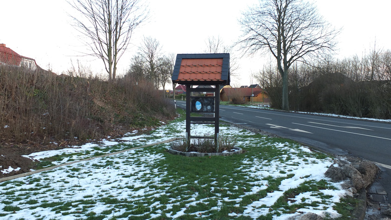 Auf der Rückseite der Ortseingangstafel Richtung Peine/Ilsede haben närrische Hände die Peiner Eule zum Gruße kreiert:
