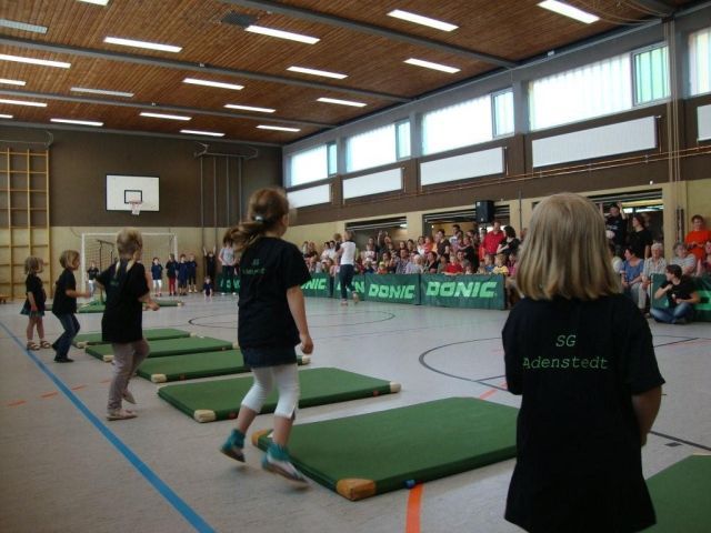Nach kurzen Grußworten und Eröffnungsreden durch den 1. Vorsitzenden der SGA (Ralf Gieseke), dem stellvertretenden Gemeindebürgermeister Wilhelm Eickmann, dem Ortsbürgermeister Wolfgang Rasch sowie der Schulleiterin Petra Almstedt-Salten ging es mit den Vorführungen der Grundschulkinder los. Alle vier Klassen der Grundschule hatten eigens ein Programm einstudiert, vom Tanz über Theater bis hin zu fast schon akrobatischen Turnübungen.