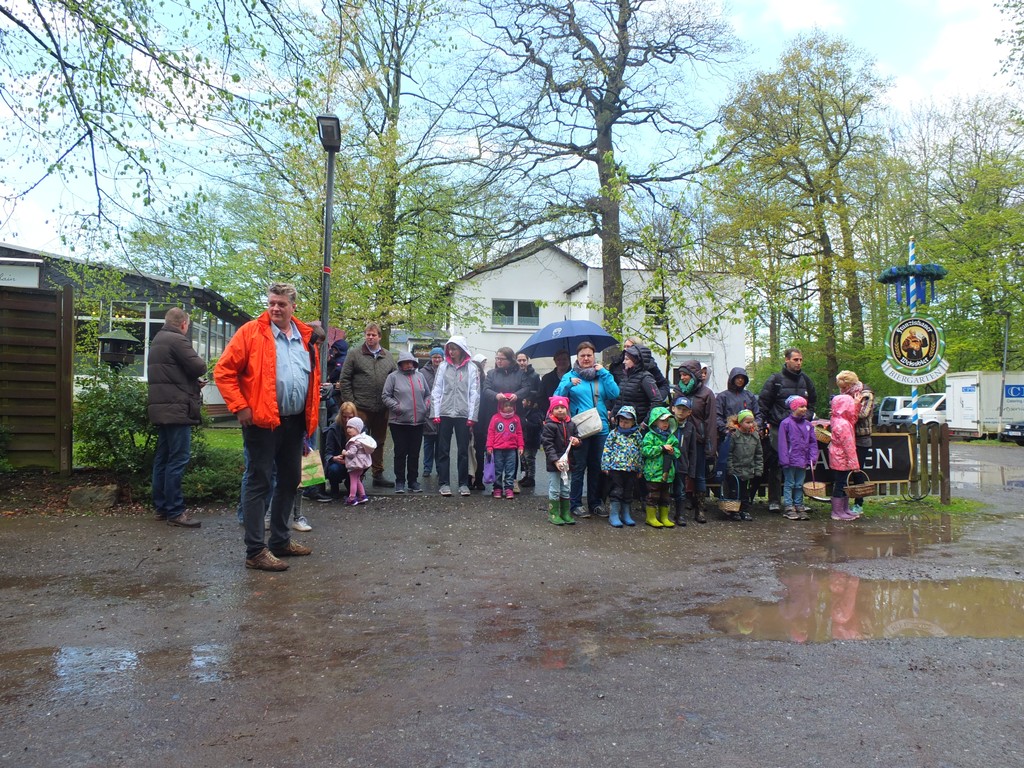 Hier konnte Karsten Könnecker dann auch eine treue Schar Kinder in Begleitung ihrer Eltern begrüßen. Und siehe, von da an wurde das Wetter sekündlich besser.