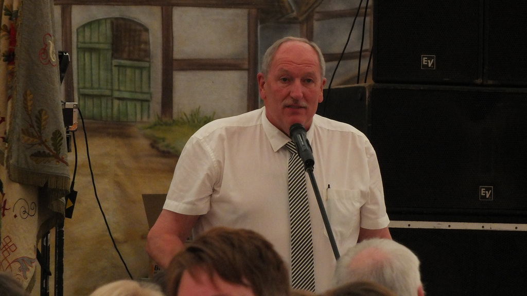 Zu Beginn des Königsfrühstücks gab der neue Pastor Burkhard Kugelann seinen Einstand als Festzelt-Gottesdienst-Pastor. Die Fußstapfen des Vorgängers (Pastor Sabrowski war ebenfalls beim Frühstück anwesend) sind schwer zu füllen, doch Burkhard Kugelan mühte sich redlich mit gereimten Begrüßungs-Worten und nahm: „die Gemeinschaft“ als Thema des Gottesdienstes.