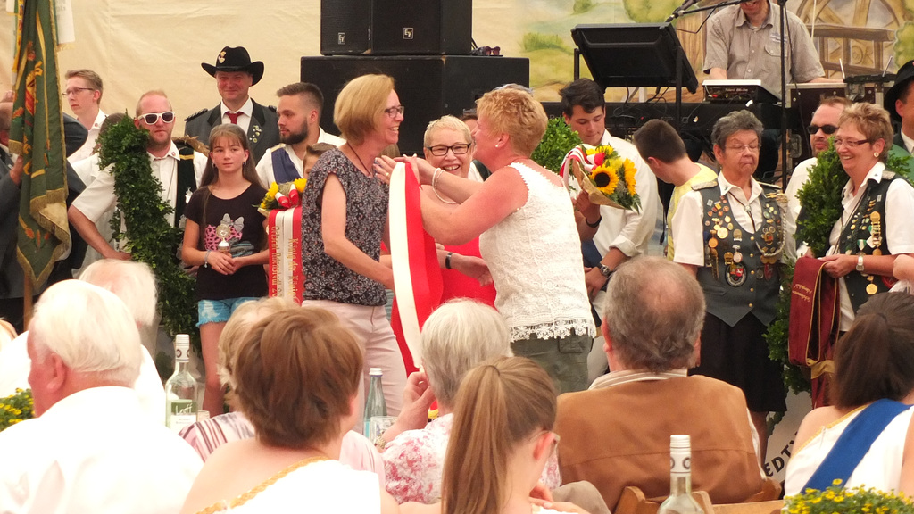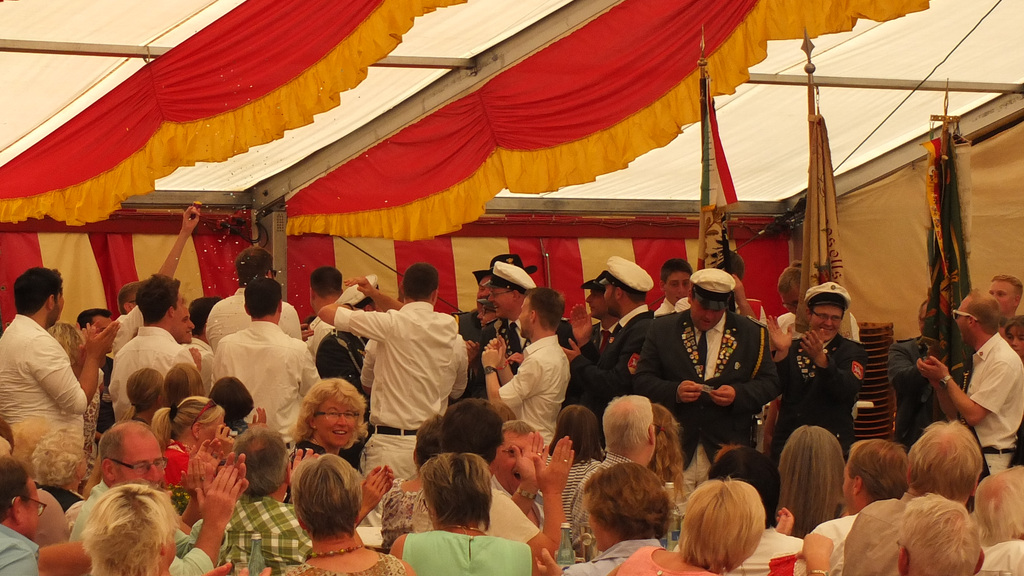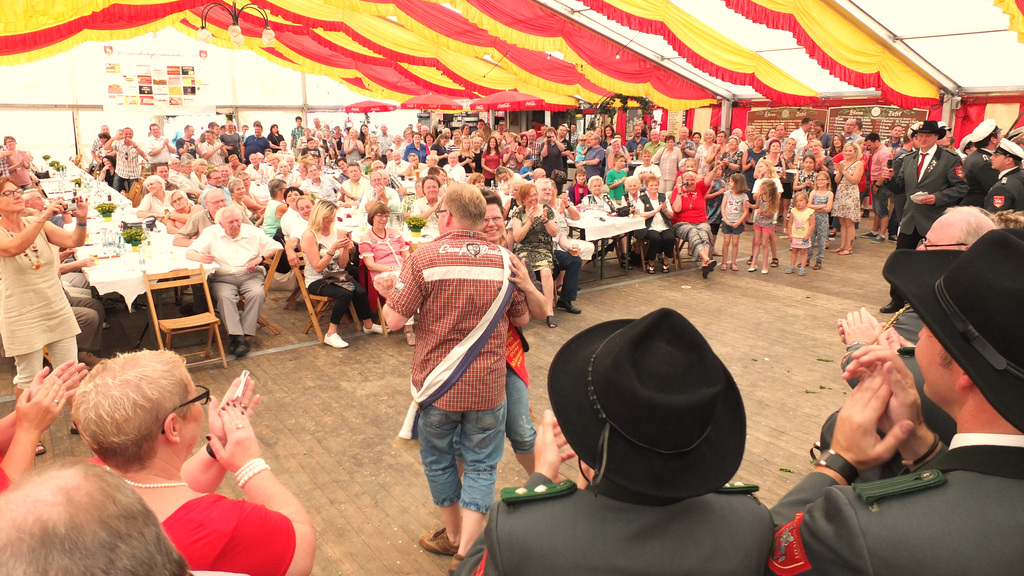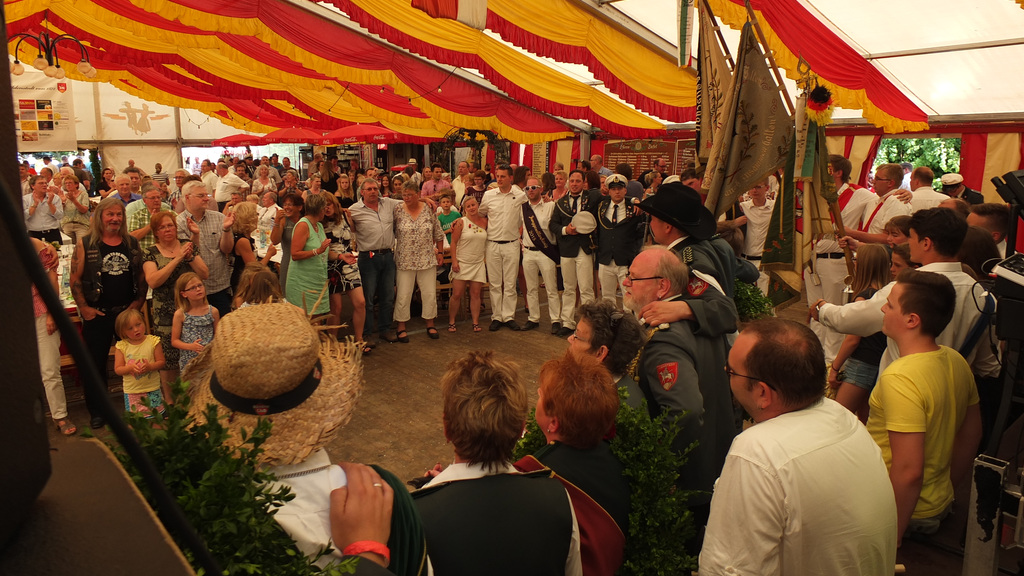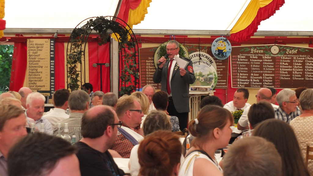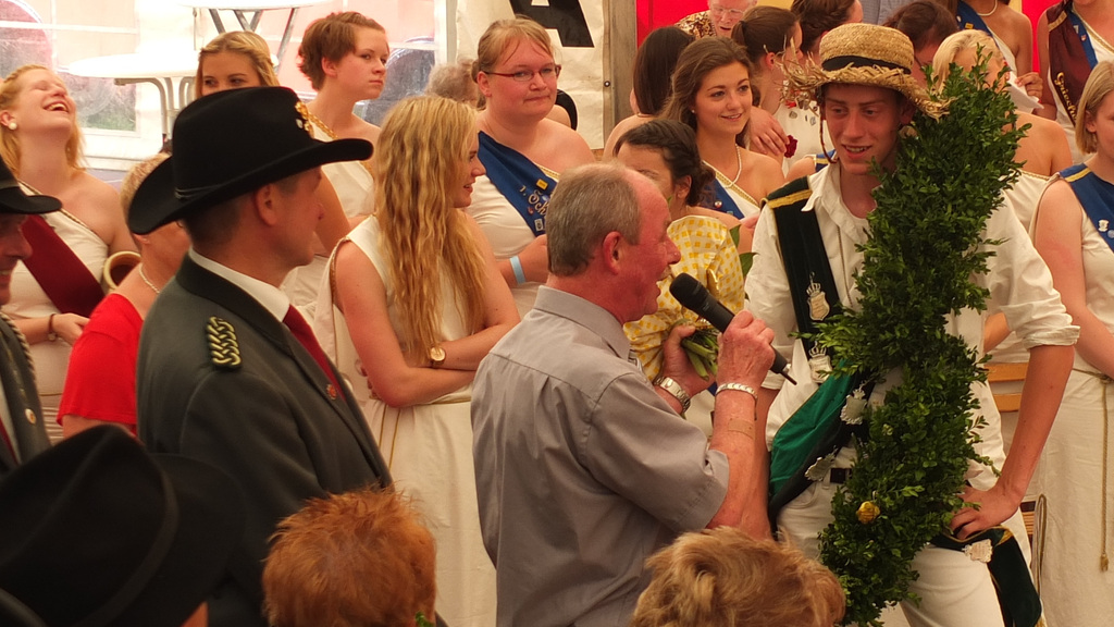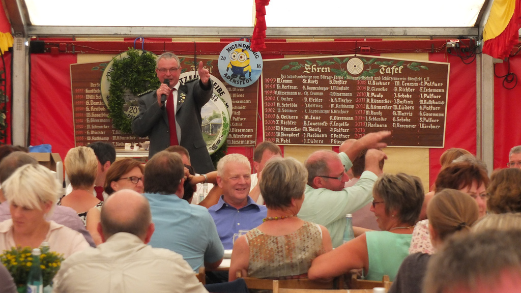 Gottesdienst, Frühstück, Gesang, Reden, Party im Zelt, Neuigkeiten aus der Provinz, und dann Proklamation der neuen Könige, das ist das Königsfrühstück in Adenstedt. Die Schule war ganz großes Thema diesmal :