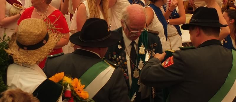 Zurückgreifend auf die letzliche Fußball-EM meinte er in seiner Predigt (Lukas-Evangelium), daß gute Freunde, gute Gemeinschaft das Beste auf der Welt sei, und lobte die Junggesellschaft, die seit 1872 tradierte Werte hochhalte, und sich für die Gemeinschaft einsetzen würde. Auch las er in der JG-Festschrift, diese Gemeinschaft kenne keine trennende Kluft geistiger, politischer, konfessioneller oder rassistischer Grenzen Das sei gut!
